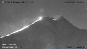 Auf Wochensicht wurden nach Angaben des in Yogyakarta ansässigen Zentrums für Forschung und Entwicklung im Bereich geologischer Katastrophentechnologie (BPPTKG) zwischen dem 19. und 25. September 2025 insgesamt 88 Lavalawinen registriert. Fünf dieser Lavalawinen in Richtung des Bebeng-Flusses, 37 in Richtung des Krasak-Flusses und 46 in Richtung der Flüsse Sat/Putih – jeweils mit einer maximalen Reichweite von 2.000 Metern.