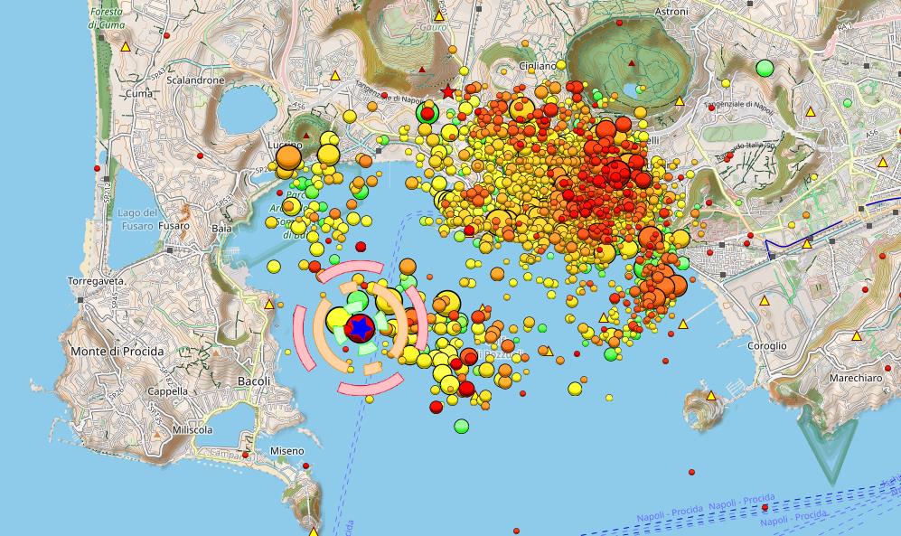 Heute Mittag ereignete sich im Südwesten der italienischen Caldera Campi Flegrei ein Erdbeben der Magnitude 4,0. Das Epizentrum lag offshore im Golf von Pozzuoli und vor der Küste von Bacoli. Das Hypozentrum wurde vom INGV in 4 Kilometern Tiefe verortet.