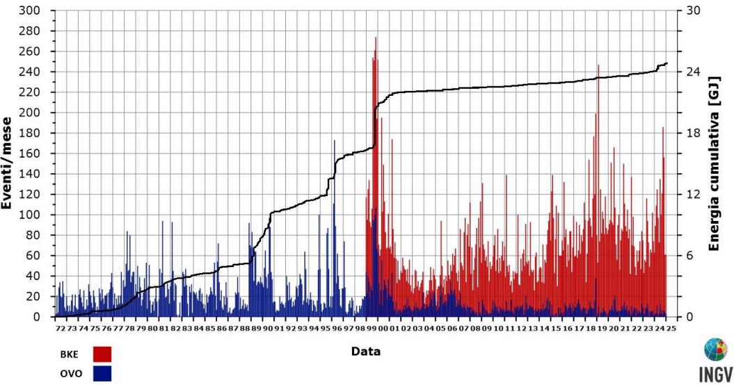 In Sichtweite zum Vesuv liegt der Calderavulkan Campi Flegrei, der seine langjährigen Trends ebenfalls beibehält. Hier steigt die magmatisch bedingte Unruhe im Untergrund allerdings weiter an. Auch in den letzten Tagen gab es weitere Erdbeben und Bodenhebungen.