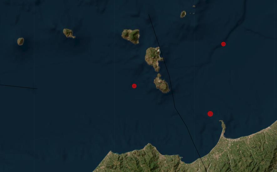 Nahe Vulcano ereigneten sich 3 Erdbeben im Magnituden größer 2