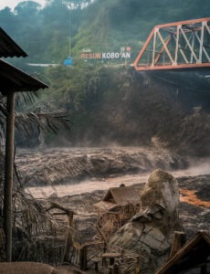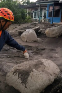 Auf der Curahkobokan-Brücke standen auch Schaulustige, die mit ihren Handys filmten, wie ein pyroklastischer Strom unter der Brücke durchfloss. Bilder aus dem bebauten Flussbereich unter der Brücke zeigen auch, dass der pyroklastische Strom metergroße Gesteinsbrocken mit sich brachte, die noch dampften, als man sie Stunden nach dem Ereignis mit Wasser beschüttete.