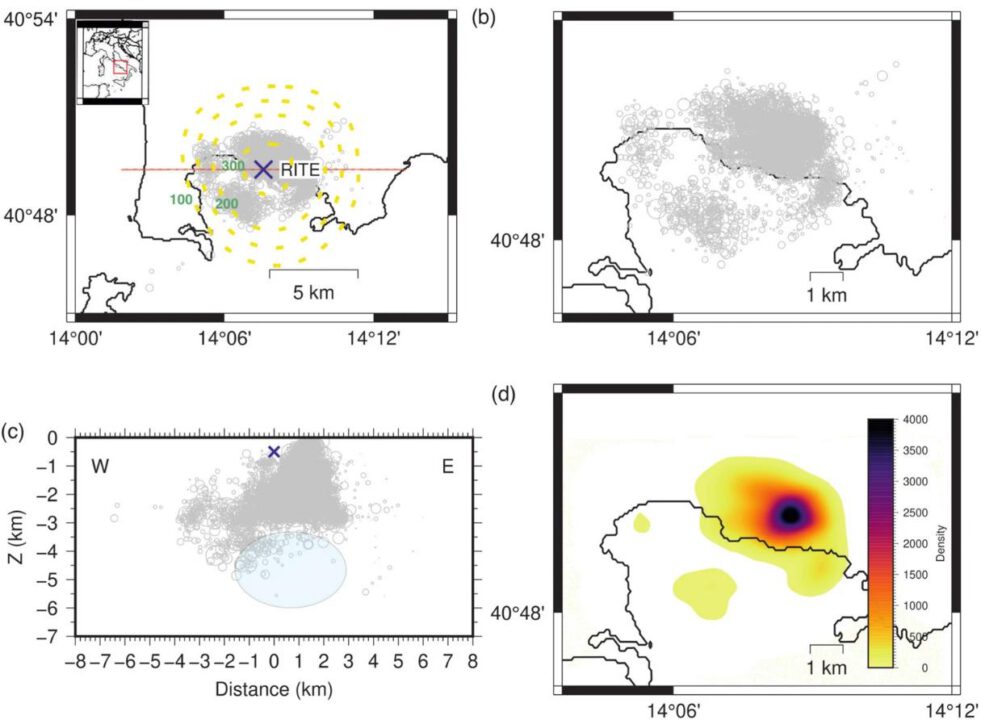 Campi Flegrei ist eine der aktivsten und komplexesten Vulkanregionen Europas. Die Caldera liegt am Rand des Ballungsraums Neapel und ist selbst dicht besiedelt: In der „roten Zone“ der Campi Flegrei, dem von Italiens Zivilschutz als am höchsten gefährdet eingestuften Gebiet bei einem möglichen Vulkanausbruch, leben nach aktuellen Einschätzungen etwa 500 000 Menschen. Seit 20 Jahren hebt sich der Boden der Caldera – zunächst langsam, dann immer schneller. Die Bodenhebung wird von Tausenden Erdbeben jedes Jahr begleitet. Ein aktueller wissenschaftlicher Artikel, veröffentlicht im renommierten Fachjournal Scientific Reports (Nature), liefert nun wichtige neue Erkenntnisse über die Dynamik der vulkanischen Unruhe – insbesondere über den Zusammenhang zwischen der Bodenhebung und der Häufigkeit von Erdbeben.