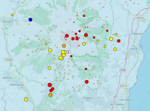 Am Ätna dampft es nicht nur stark, sondern es hat geschneit und Gipfel und Nordflanke präsentieren sich in weißem Winterkleid, was alle erfreuen dürfte, die auf eine weiße Weihnacht am Mongibello hoffen und natürlich darauf, dass der Schnee die Schipisten gut bedecken wird, zumal der Schnee bis jetzt frei von Vulkanasche ist. Dass das so bleibt, ist aber nicht garantiert, denn es gibt in den letzten Tagen eine leichte Zunahme der Seismizität, die sich besonders in schwachen Erdbeben südlich des Gipfels manifestiert, die sich in mittleren Tiefen von 5 bis 10 Kilometern abspielen und durch aufsteigende Fluide entstehen könnten, die Spannungen an Störungen erzeugen.