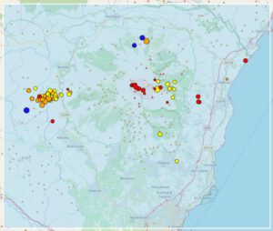 Diese Anzeichen manifestieren sich in Erdbeben, von denen es in den letzten Tagen reichlich gab. Wie berichtet gab es am 25. Januar einige Erdbeben mit Magnituden über 2,0, die sich unter der Westflanke ereigneten. Mit der verspäteten Veröffentlichung der INGV-Daten auf der Shakemap des Instituts ist im Nachhinein deutlich geworden, dass es eine größere Anzahl an schwächeren Beben gab, als aus den EMSC-Daten ersichtlich war. Möglich, dass wir am Ätna früher einen neuen Ausbruch sehen werden als bislang gedacht, obwohl die restlichen Geodaten darauf keinen Hinweis liefern.