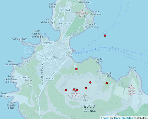 Die Beben unter dem Ätna sind aber nicht die einzigen Erschütterungen unter sizilianischen Vulkanen: Unter der Fossa 2 auf Vulcano manifestierten sich seit dem 16. November ebenfalls 8 schwache Erschütterungen in geringen Tiefen, von denen sich 7 Beben direkt unter dem Vulkankegel ereigneten. Ein weiterer Erdstoß wurde unter der Bucht von Porto di Levante lokalisiert. In den letzten 4 Wochen gab es eine deutliche Steigerung dieser Erdbeben, die ich hier schon als signifikant bezeichnen würde. Leider gibt es momentan keine Wochenberichte des INGV, so dass wir uns bis Anfang Dezember gedulden müssen, um Einblick in die weiteren geophysikalischen und geochemischen Daten zu bekommen. Mich würde ein steigender Kohlendioxidausstoß ebenso wenig überraschen wie weitere Erdbeben.
