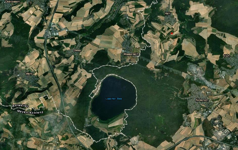 Erneut bebte es in der Nähe des Laacher-See-Vulkans in der deutschen Vulkaneifel. Die schwache Erschütterung wurde bereits gestern Abend um 18:22:19 Uhr (17:22:19 UTC) registriert, erscheint jedoch erst seit Kurzem auf der EMSC-Shakemap. Das Beben wurde 11 km westlich von Neuwied in einer Tiefe von 13 Kilometern lokalisiert. Tatsächlich lag das Hypozentrum zwischen Wassenach und Kell, etwa 2 Kilometer nördlich des Laacher Sees.