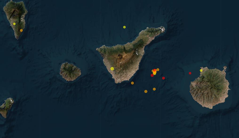 In der Meerenge zwischen den Kanareninseln Teneriffa und Gran Canaria wurden in den letzten 3 Tagen 15 Beben registriert. Das stärkste hatte eine Magnitude von 2,0 und einen Erdbebenherd in 11 Kilometern Tiefe. Viele der Beben lagen noch tiefer und somit im Grenzbereich der unteren Erdkruste zur Asthenosphäre. Die Epizentren wurden größtenteils wenige Kilometer westlich des Unterwasservulkans Enmedio verortet. Die Erdbeben manifestieren sich aber an einer bekannten Störungszone, die vermutlich auch als Aufstiegsweg magmatischer Fluide dient. So könnten die Beben durch Spannungsänderungen infolge von Fluidbewegungen ausgelöst werden. Dass es auf absehbare Zeit zu einem submarinen Vulkanausbruch kommt, ist eher unwahrscheinlich.