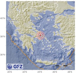 Update: Inzwischen wurden die Daten zum Erdbeben vom EMSC/GFZ manuell überprüft und korrigiert. Die Magnitude beträgt nun Mw 5,1. Das Hypozentrum lag den neuen Einschätzungen nach sehr flach, in nur 2,3 km Tiefe. Das Epizentrum wurde verlagert und liegt nun an der Küste von Euböa.