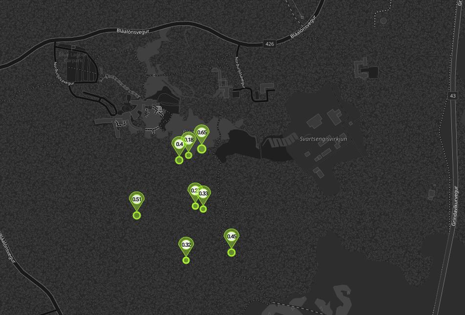 - Das Geothermalkraftwerk Svartsengi nutzt ein geothermales Reservoir, das in etwa 1–2 km Tiefe in porösen Basalten liegt.