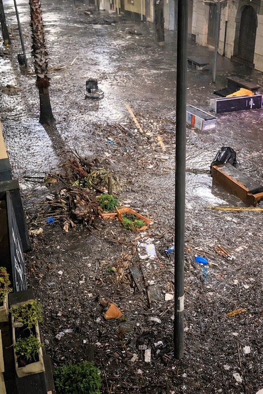 In den sozialen Medien geteilte Aufnahmen zeigen das Ausmaß der Zerstörungen, die bis jetzt noch nicht bilanziert werden konnten. Im Großraum Catania und entlang der Küste von Aci Trezza und Aci Reale wurden zahlreiche Küstenmauern – aus Lavagestein des Ätnas erbaut – zerlegt und die Trümmer gegen Vorgärten und Hauswände geschoben, die ihrerseits beschädigt wurden. Die durch den rauen Seegang ausgelösten Überflutungen in den küstennahen Bereichen verwandelten Straßen in Flüsse, die allerlei Unrat mit sich führten. Der Fährverkehr zu den Liparischen Inseln vor der Nordküste Siziliens wurde eingestellt, die Inseln waren zeitweise von der Außenwelt abgeschnitten. Berichte über neue Murenabgänge auf Stromboli liegen bis jetzt nicht vor.
