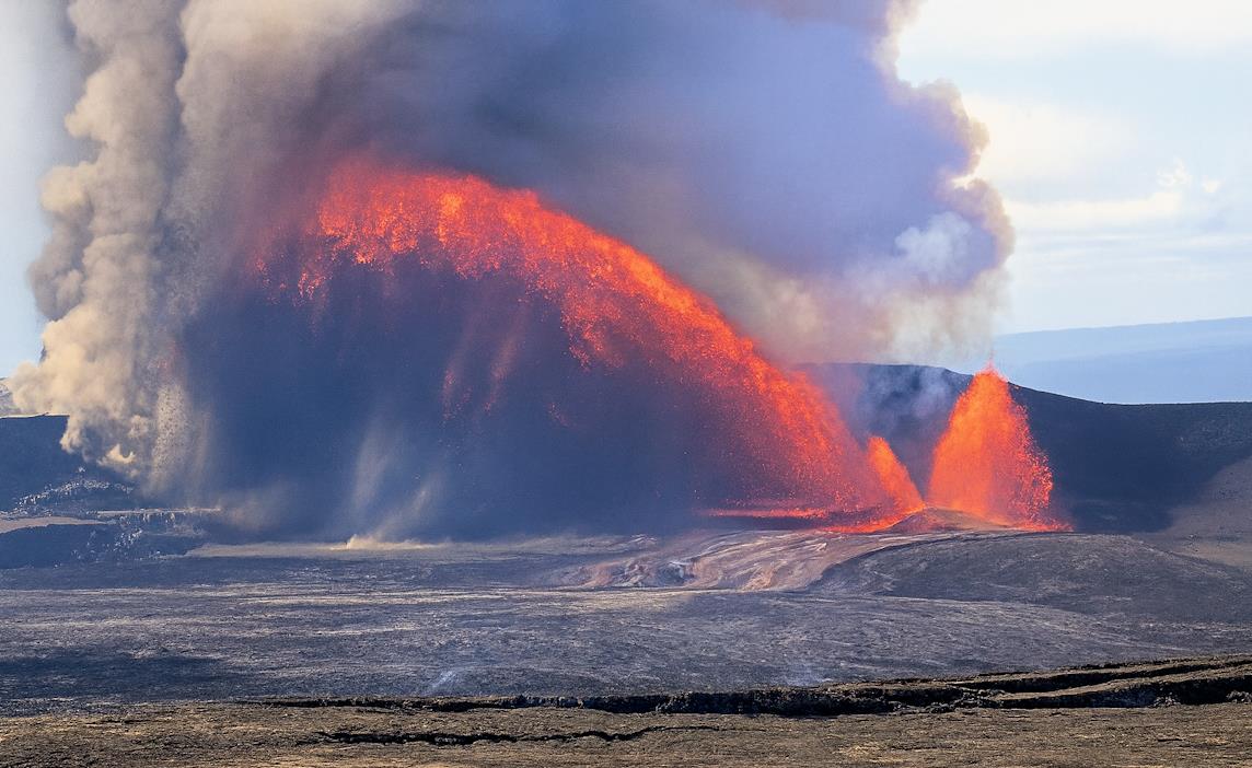 Der Kilauea auf Hawaii hat am Samstag die bislang intensivste Eruption dieses Ausbruchszyklus durchlaufen. Episode 38 begann gegen 8:45 Uhr HST (21:45 Uhr MEZ) mit dem Auftreten erster Fontänen im nördlichen Schlot am Rand des Halemaʻumaʻu-Kraters. Mehrere bereits am Vortag registrierte Vorläufer-Überläufe und eine zunehmende Inflation am Gipfel hatten diesen Ausbruch angekündigt.