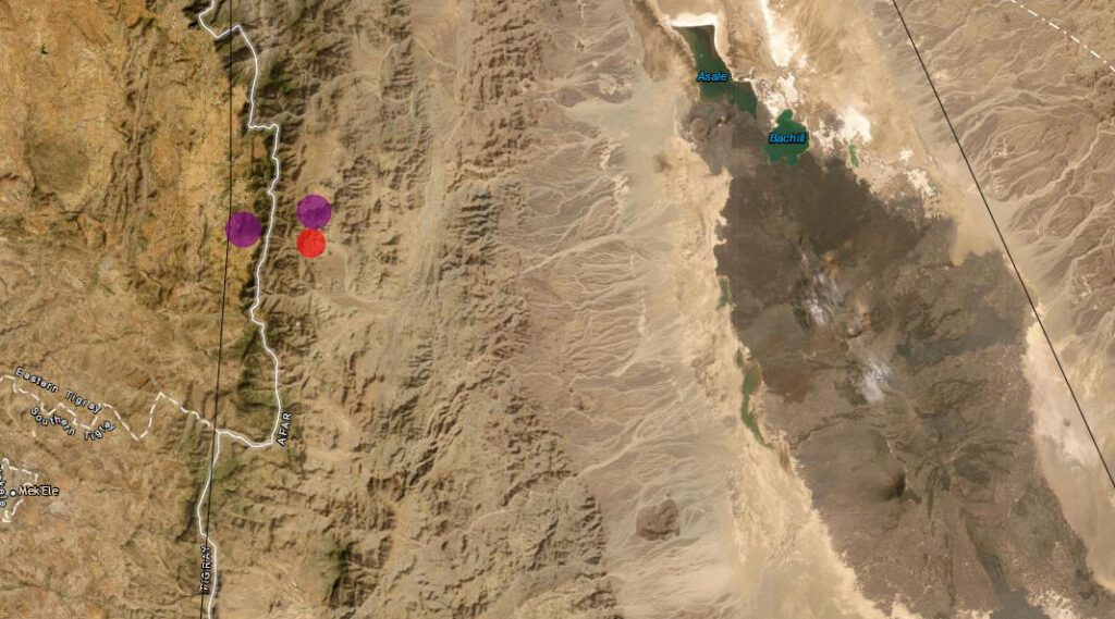 Auf den ersten Blick dachte ich zunächst, dass es eine neue Magmaintrusion in der Awash-Region gibt, doch beim Hineinzoomen in die Shakemap stellte ich fest, dass dem nicht so ist. Wenn die Verortung der Beben korrekt ist, dann manifestierten sich alle drei Beben an der Störungszone der westlichen Grabenschulter des ostafrikanischen Riftvalleys, das sich im Norden Äthiopiens zum Afar-Dreieck erweiterte. Die Epizentren liegen fast auf der gleichen Breite wie der Schildvulkan Erta-Alé, der sich gut 90 Kilometer entfernt befindet. Die beiden stärkeren Erdbeben könnten sich auf den Vulkan auswirken, der seit dem großen Ausbruch im Juli verhältnismäßig still geworden ist. Bei den Eruptionen hatten sich zwei neue Pitkrater gebildet, die aktuell stark entgasen. Größere Lavaansammlungen gibt es aber nicht.