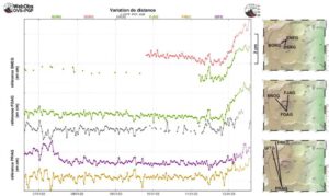 Begleitend zu den Erdbeben zeigt sich eine fortschreitende Aufblähung des Vulkans. GPS-Messungen seit Ende November verzeichnen eine Ausdehnung der Gipfelfläche um etwa 2,5 bis 3 Zentimeter, was ebenfalls auf eine Druckzunahme im Magmasystem hindeutet. Gasemissionen am Gipfel bleiben niedrig und liegen nahe der Nachweisgrenze, was typisch für Dampfimpulse aus dem hydrothermalen System ist.