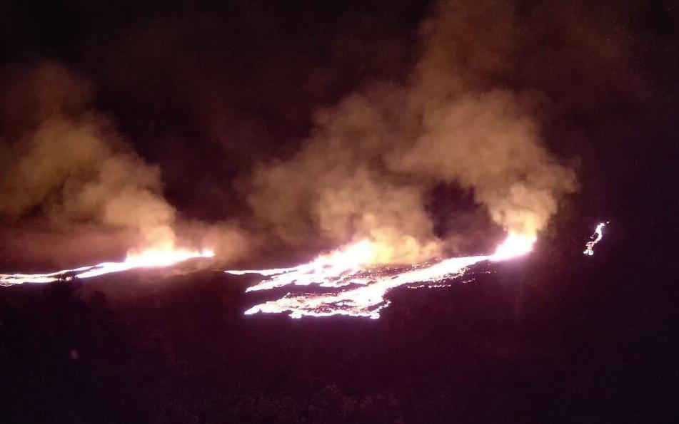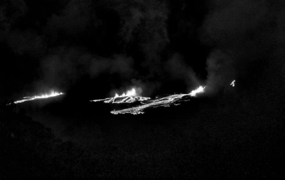 Update 18:30: Während weitere Informationen der Vulkanologen auf sich warten lassen, werden in den sozialen Medien weitere Bilder von denjenigen geteilt, die eine Verbindung zu den LiveCams aufbauen können. Auf dem bis jetzt klarsten Foto ist zu erkennen, dass sich drei kurze Eruptionsspalten geöffnet haben, aus denen kleine Lavafontänen aufsteigen, die Lavaströme speisen. Ein einzelner Schlot scheint sich am rechten Bildrand zu befinden.