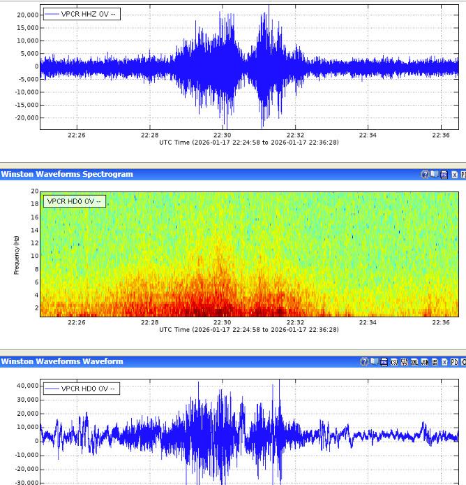 Am 16. Januar kam es innerhalb eines Tages zu mindestens drei kleinen phreatischen Ausbrüchen. Die Eruptionen wurden durch Seismographen und Infraschallsensoren eindeutig erfasst. Aufgrund eingeschränkter Sichtverhältnisse durch dauerhafte Bewölkung im Gipfelbereich konnte die Höhe der Eruptionssäulen nicht bestimmt werden. Berichte über Ascheregen lagen nicht vor, was darauf hindeutet, dass überwiegend schlammige Sedimente und Dampf ausgestoßen wurden.