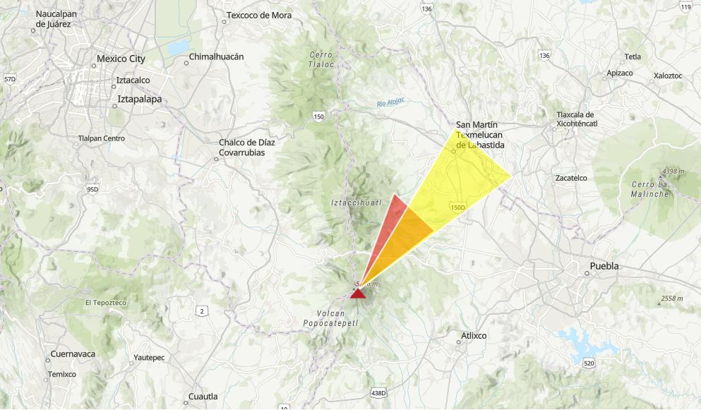 Der mexikanische Vulkan Popocatepetl zeigt einmal mehr vulkanische Aktivität mit Ascheemission, die bis auf eine Höhe von 6.700 m aufgestiegen sind und in Richtung Nordosten driften. Dabei bewegt sich die Aschwolke mit einer Geschwindigkeit von ca. 28 km/h und breitet sich über ein großes Areal aus. In Gebieten unter der Eruptionswolke ist es zu Ascheniederschlag gekommen.