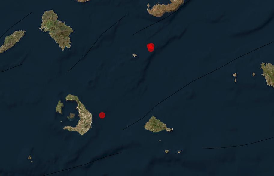 Heute ereigneten sich östlich von Santorin insgesamt 4 Erdbeben, von denen die beiden stärksten die Magnituden 3,2 und 3,0 hatten. Während das stärkere Beben wieder kurz vor der Küste von Santorin lag und von Anwohnern der Insel verspürt wurde, bildeten die drei anderen Beben einen kleinen Cluster nordöstlich von Anydros. In der Region der unbewohnten Insel gab es im Frühjahr letzten Jahres eine massive Magmenintrusion, die vom submarinen Vulkan Kolumbos ausging und mit magmatischen Prozessen der Santorin-Caldera gekoppelt war. Wahrscheinlich handelt es sich bei den aktuellen Erschütterungen um Nachwehen der Beinahe-Geburt eines neuen Unterwasservulkans, doch es besteht die Möglichkeit neuerlicher Intrusionen.