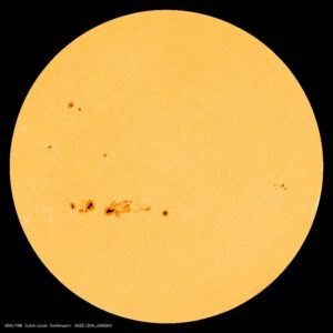 Am 28. November 2025 hat ein riesiger Sonnenfleckenkomplex begonnen, den südöstlichen Rand der Sonne zu passieren. Dieser besteht aus drei aktiven Regionen – AR 4294, 4296 und 4298 – von denen insbesondere AR 4294 mit einer Fläche, die zehnmal so groß ist wie die Erdoberfläche, hervortritt. Die Region ist so gewaltig, dass sie das Potenzial für starke Sonneneruptionen der M- oder sogar X-Klasse besitzt. Das DLR beobachtet diese Entwicklung mit großer Aufmerksamkeit, denn ein Ausbruch könnte in den nächsten Tagen eine Plasmawolke (koronaler Massenauswurf) in Richtung Erde schleudern und kritische Infrastruktur beeinträchtigen.