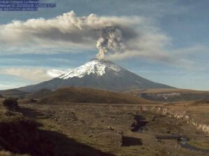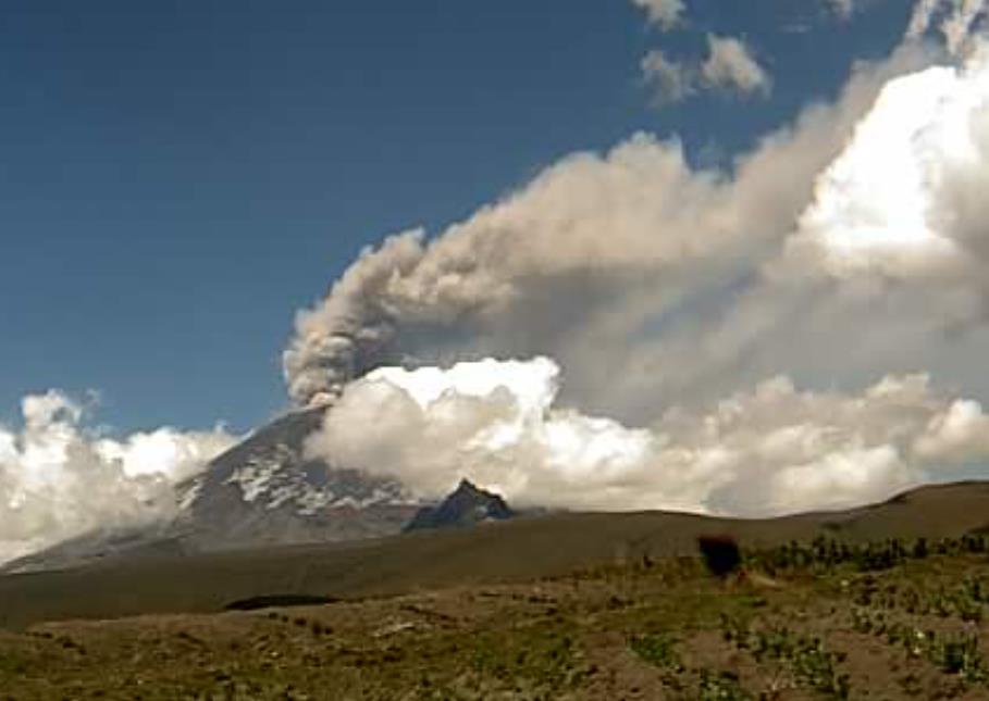 Der Cotopaxi stößt ebenfalls Aschewolken aus, die bis auf einer Höhe von 6400 m aufsteigen und in Richtung Nordwesten verfrachtet werden. Das IGPN meldete Aschewolken in 500 m Höhe über dem Kraterrand. Auf dem zugehörigen Bild erkennt man, dass die Asche vom starken Wind niedergedrückt worden ist.