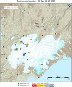 Unter der gesamten Insel wurden übrigens 268 Beben festgestellt. Auffällig waren die Beben im Bereich von Katla, Torfajökull und Hekla. Nach Einschätzung mehrerer Vulkanologen war letztgenannter Vulkan bereits vor gut einem Jahrzehnt bereit zu eruptieren, aber irgendwie ist bis jetzt nichts aus dem Ausbruch geworden. Ein weiteres Beispiel dafür, wie schwer es ist, Vulkanausbrüche vorherzusagen.