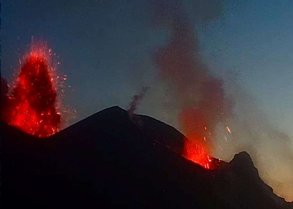 Gerade veröffentlichte das INGV auch ein neues Video, dass Lavaspattering aus dem neuen Hornito zeigt, der in den letzten Monaten am Nordrand des Kraters gewachsen ist. Seine Höhe wird auf gut 20 Meter geschätzt. Sollte es zu einem Paroxysmus kommen, könnte dieser Hornito kollabieren.