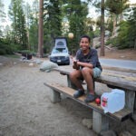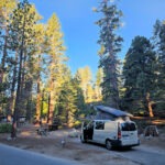 Wir warteten nochmal gut 1 Stunde auf einen zweiten Sprung und machten uns dann auf den Weg zu unserem reservierten Campingplatz im Grand Village am Yellowstone Lake, wo wir nach ca. 45 Minuten mit dem letzten Tageslicht ankamen. Beim Check-in wies man uns ausdrücklich auf die Bärengefahr hin und wir sollten tunlichst keine Lebensmittel draußen liegen lassen und natürlich auch nicht offen im Camper aufbewahren. Der Stellplatz erwies sich als recht geräumig, allerdings hatte praktisch immer irgendein Nachbar einen Stromgenerator am Knattern, was dann doch nervte. Hey Nachbar, noch nichts von Solarbatterien gehört?