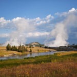 Nach dem Passieren des Parkeingangs folgten wir der Hauptroute 191 in Richtung Old Faithful und wollten bei dem schönen Wetter gleich ein paar Stopps an einigen der bekannten Geyser-Basins entlang der „Firehole River Basin Zone“ einlegen. Der namensgebende Fluss mäandert durch das Tal und in den Flussauen tummelten sich bei meinen früheren Besuchen des Parks Bisonherden, aber nicht dieses Mal. Erst dachte ich, ob vielleicht doch etwas an den viral gegangenen Videos sein könnte, die im Juni/Juli behaupteten, die Tiere würden massenhaft den Nationalpark verlassen, doch späteren Recherchen zufolge verließen im harten Winter 2022/23 tausende Tiere den Park, um in tieferen Regionen Futter zu suchen. Mehr als 1000 Bisons fanden dabei den Tod, zum Teil auch infolge von Jagden. Zudem wurden die Bisons auch im Nationalpark gezielt dezimiert, aus Sorge, sie könnten die Krankheit Brucellose auf Rinder außerhalb des Parks übertragen. Was für eine herbe Enttäuschung, denn Bisons zu filmen stand ziemlich weit oben auf Leroys Bucket-List. Aber immerhin sahen wir einige Rehe.