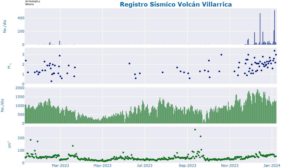 Die Vulkanologen berichten, dass die Seismizität deutlich erhöht ist. Im Januar wurden 559 vulkantektonische Erdbeben festgestellt. Die meisten Erschütterungen waren nicht wahrnehmbar, aber ein VT-Erdbeben hatte die Magnitude 3,8 und konnte von den Anwohnern der Region gespürt werden.