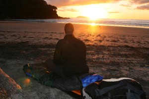 Ich war mit dem Zelt unterwegs und übernachtete am Ufer des Sees Rotomahana. Dort gibt es zwar einen Campingplatz, aber ich zog das freie Campen am Seeufer vor, was auf Neuseeland generell gestattet ist. Nur sollte man sich nicht ohne Erlaubnis auf Privatgrundstücke stellen. In direkter Nachbarschaft zum See liegt der Vulkan Tarawera, der 1886 ausbrach und das Dorf Te Waiora zerstörte. Dabei wurden auch die legendären „Pink and White Terraces“ zerstört.