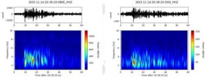 Allerdings verzeichneten die Seismometer zwischen dem 14. und 19. November zusätzlich zehn seismische Ereignisse, deren Eigenschaften deutlich von den typischen vulkanotektonischen Beben des Vesuvs abwichen. Das auffälligste dieser Signale trat am 14. November um 20:38 UTC auf und weist ein Spektrum mit dominanten Frequenzen zwischen 3 und 4 Hz auf. Von den Vulkanologen wurden diese Beben nicht weiter spezifiziert.