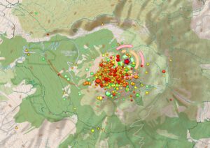 Gestern Abend um 21:26:28 UTC wurde der Vesuv von einem Erdbeben der Magnitude 2,0 erschüttert. Das Epizentrum befand sich unter der Nordostflanke des Gran Cono, der sich aus dem Friedhof mehrere Vorgängervulkane erhebt. Die Herdtiefe betrug nur 600 m unter dem Meeresspiegel. Es folgten 2 weitere schwache Erschütterungen. Gestern gab es insgesamt 6 Beben unter dem Schicksalsberg Neapels.