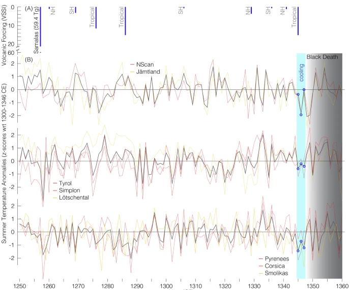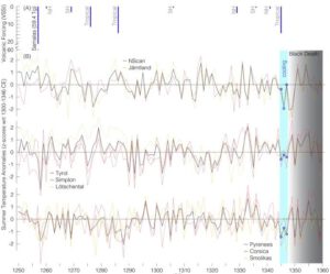 Die Forscher Martin Bauch vom Leibniz‑Institut für Geschichte und Ulf Büntgen der University of Cambridge widmeten sich in ihrer Studie „Climate-driven changes in Mediterranean grain trade mitigated famine but introduced the Black Death to medieval Europe“ der Frage nach dem Ursprung der „Kleinen Eiszeit des Mittelalters“, die schon seit längerem im Verdacht steht, die Ausbreitung der Pest in Europa begünstigt zu haben.