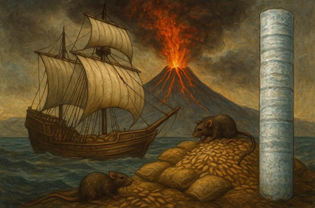 Ausgangspunkt ihrer Studien ist eine deutliche Schwefeldioxid-Signatur in arktischen und antarktischen Eisbohrkernen, datiert auf etwa 1345. Solche Signale entstehen, wenn gewaltige Vulkane große Mengen Schwefel in die Stratosphäre schleudern. Laut den Autoren deutet die geochemische Verteilung darauf hin, dass die Eruption in den Tropen stattfand – der exakte Vulkan bleibt jedoch unbekannt. Die Folgen waren eindeutig: Die Atmosphäre trübte sich ein, die Sonneneinstrahlung sank, und in Südeuropa setzten mehrere Jahre ungewöhnlich kühler und feuchter Sommer ein.