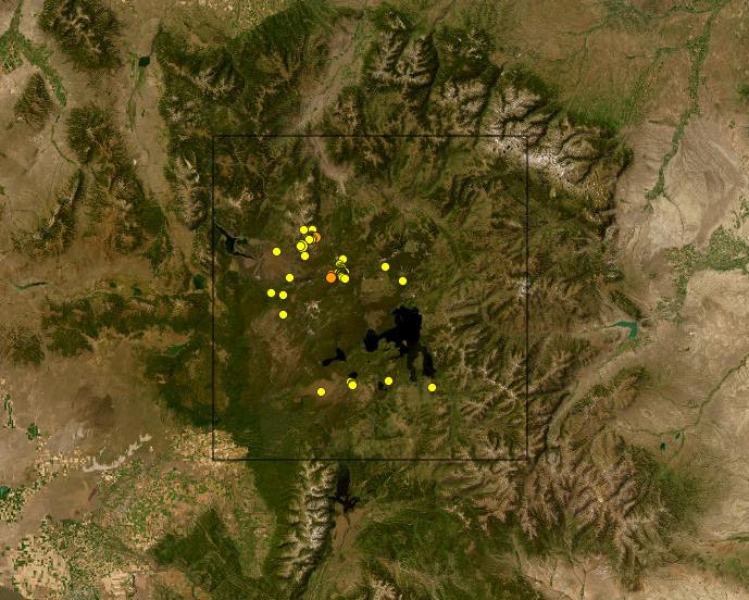 - Ein kleinerer Schwarm mit elf Erschütterungen fand Ende des Monats nordöstlich von West Yellowstone statt.