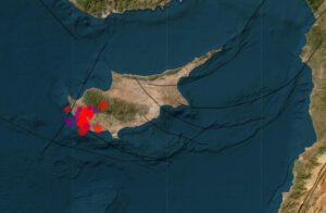 Der Westen der Mittelmeerinsel Zypern wurde heute von 2 mittelstarken Erdbeben mit Magnituden im 5er-Bereich sowie mehreren Nachbeben getroffen. Das erste Beben M 5,2 manifestierte sich vormittags um 09:31:25 UTC (11:31:25 Uhr Lokalzeit) in einer Tiefe von 10 Kilometern. Das Epizentrum lag 5 km nordöstlich von Paphos. Am Nachmittag folgte um 14:23:31 UTC (16:23 Uhr Ortszeit) ein zweites Beben M 5,3. Die Herdtiefe lag bei nur 9 Kilometern. Dieser Erdstoß wurde 15 km nordnordöstlich von Paphos verortet. Die Daten zu diesem Ereignis könnten noch korrigiert werden.