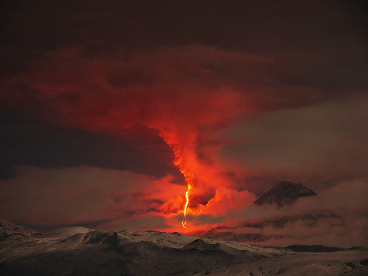 In February/March 2010 there was an eruption of the volcano. First a high rising ash cloud was produced, then the volcano was strombolian active for several weeks. A lava flow was also created. Kliuchevskoi has been seismically active since June 2012 and strombolian eruptions began at the summit crater on 14 October.A new eruptive phase occurred between August and October 2013. It began with strombolian eruptions. Later several lava flows were produced. In mid-October the explosiveness of the eruption increased. Lava fountains rose up to 1000 m high and an ash cloud was produced. I was able to document this part of the eruption on site.