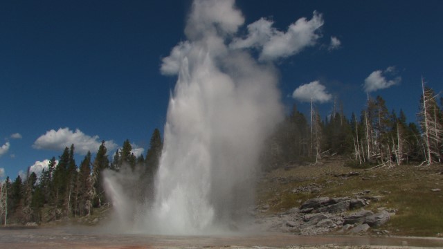 | Der Grand Geysir im Upper Geysir Basin ist der größte Geysir, dessen Eruptionen voraussagbar sind, wobei Zeitraum und Dauer der Eruptionen stark variieren. Die Ausbrüche erfolgen in Schüben, dauern bis zu 20 Minuten und können eine Höhe von 60 Metern erreichen. |