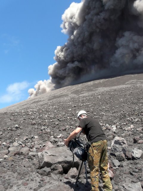 Dies Bilder entstanden im Januar 2008. Drei Monate zuvor kollabierte ein Teil der oberen Flanke des Anak Krakatau und es entstand ein neuer Krater. Dieser war über Jahre Schauplatz zahlreicher Eruptionsphasen. Im Laufe der Jahre schloss sich die Flanke wieder und der Krater verlagerte sich an den Gipfel. Seit 2012 ist es am Krakatau relativ ruhig.